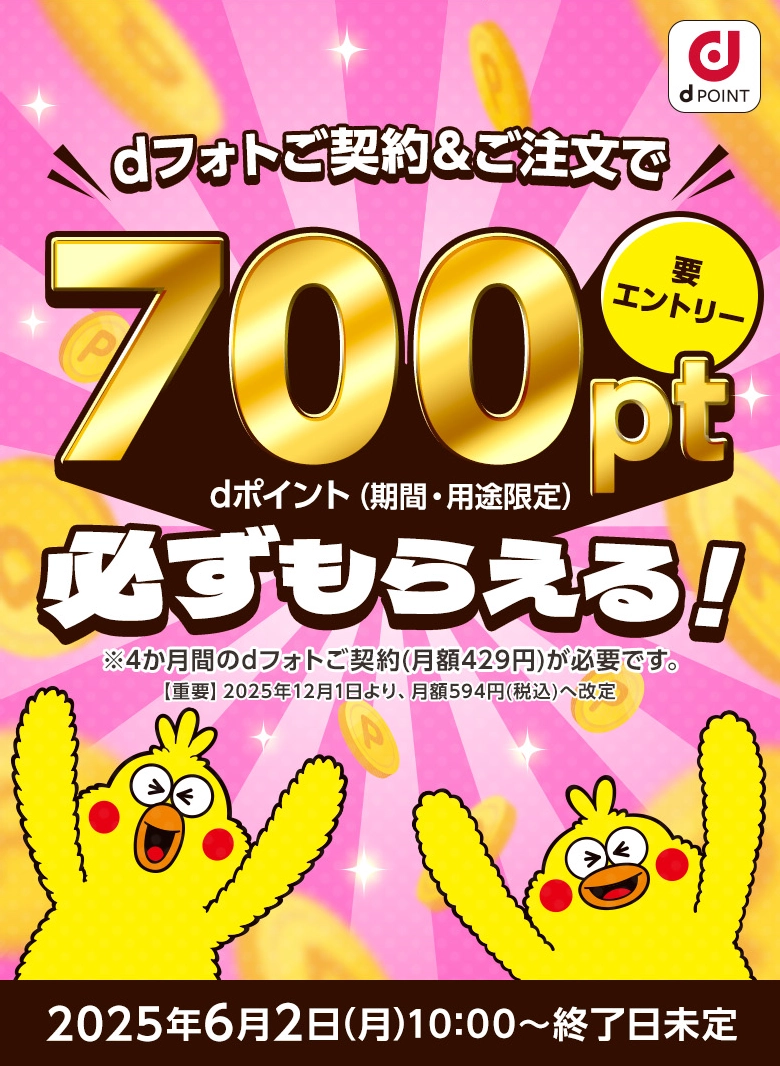 「700pt必ずもらえる!dフォト入会キャンペーン」