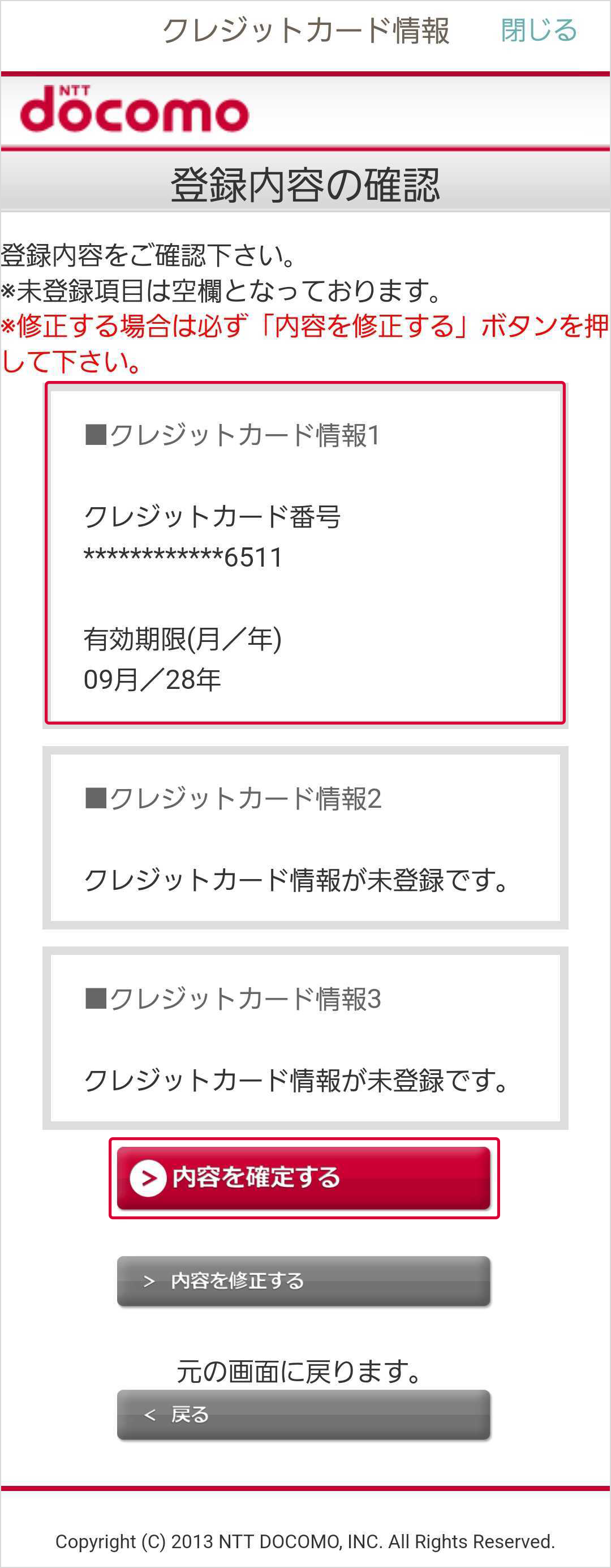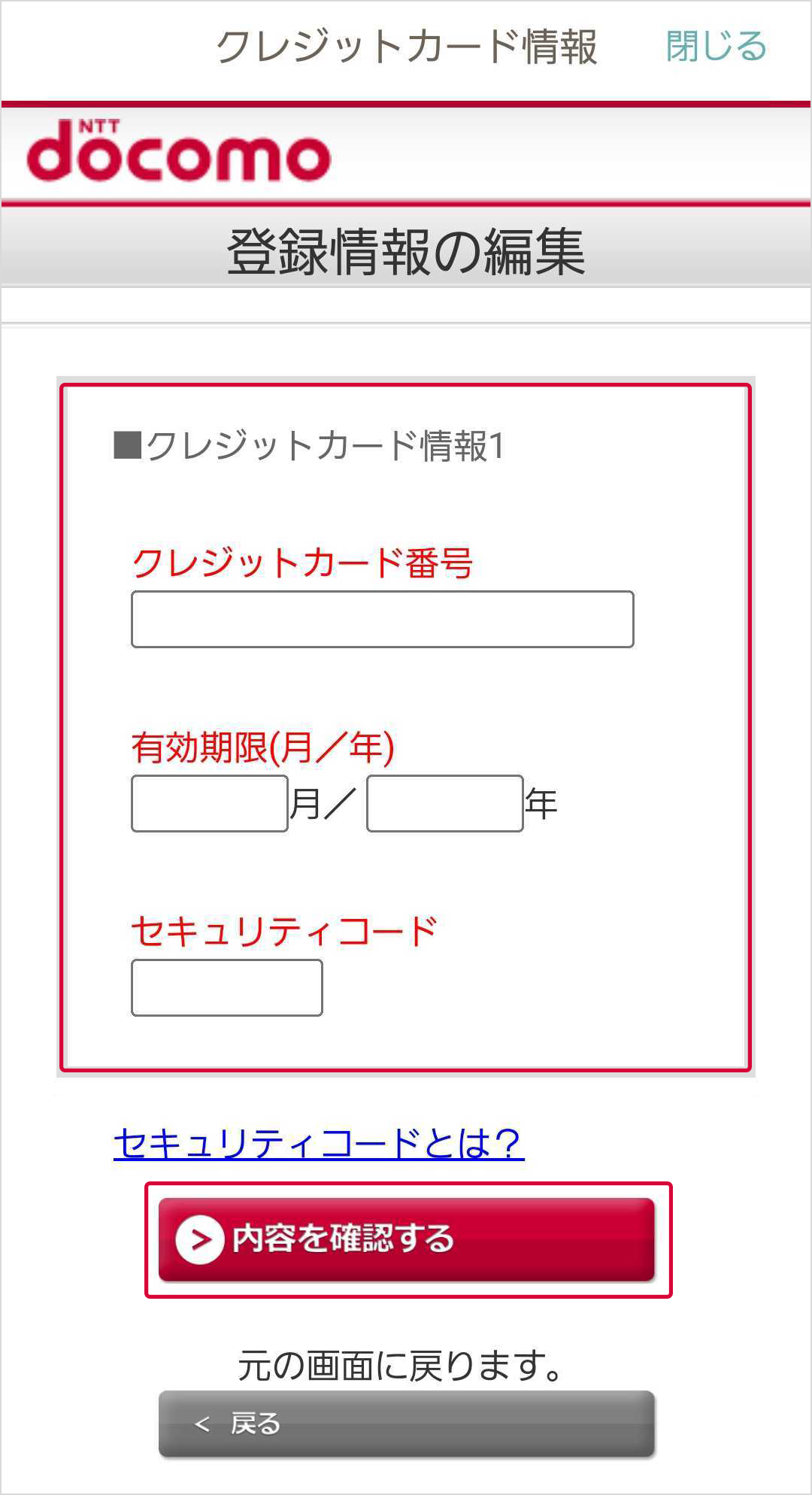 (2)クレジットカード情報を入力し、「内容を確認する」を選択