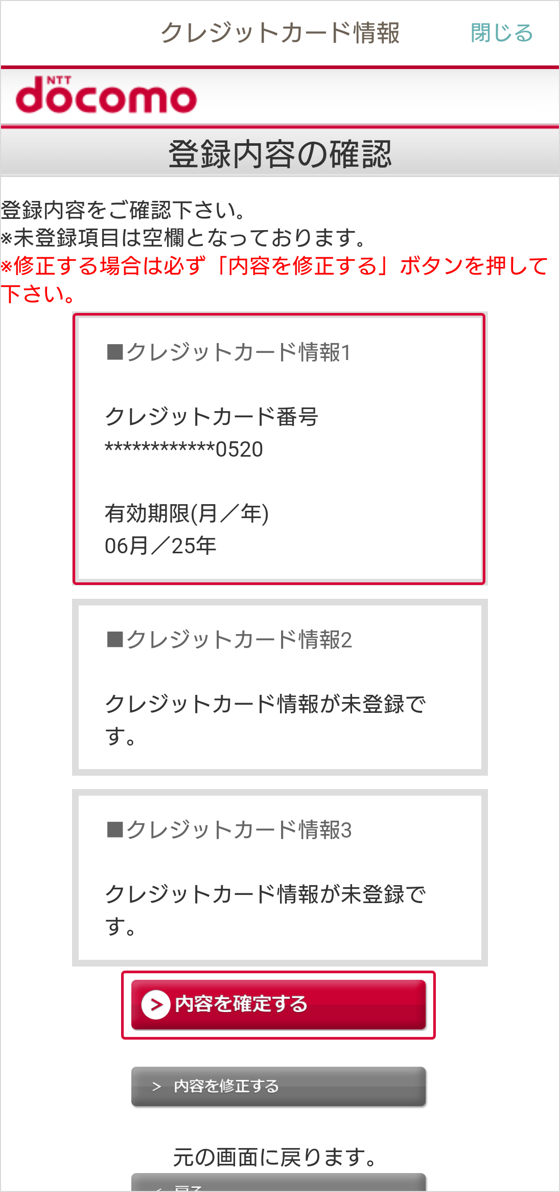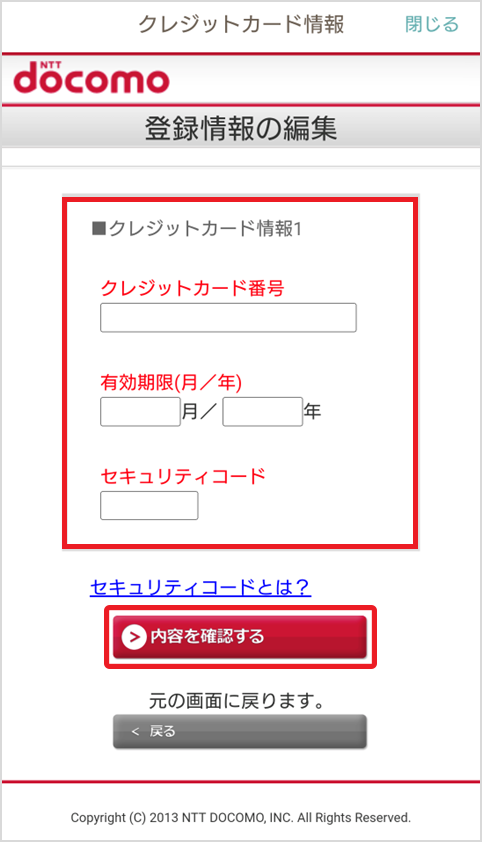 (2)クレジットカード情報を入力し、「内容を確認する」を選択