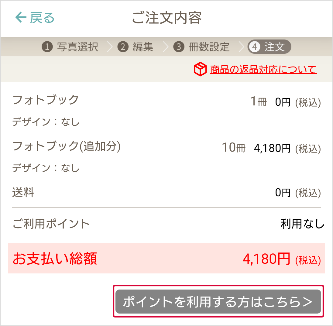 - ポイントを利用する場合は『ポイントを利用する方はこちら>』を押下してください。